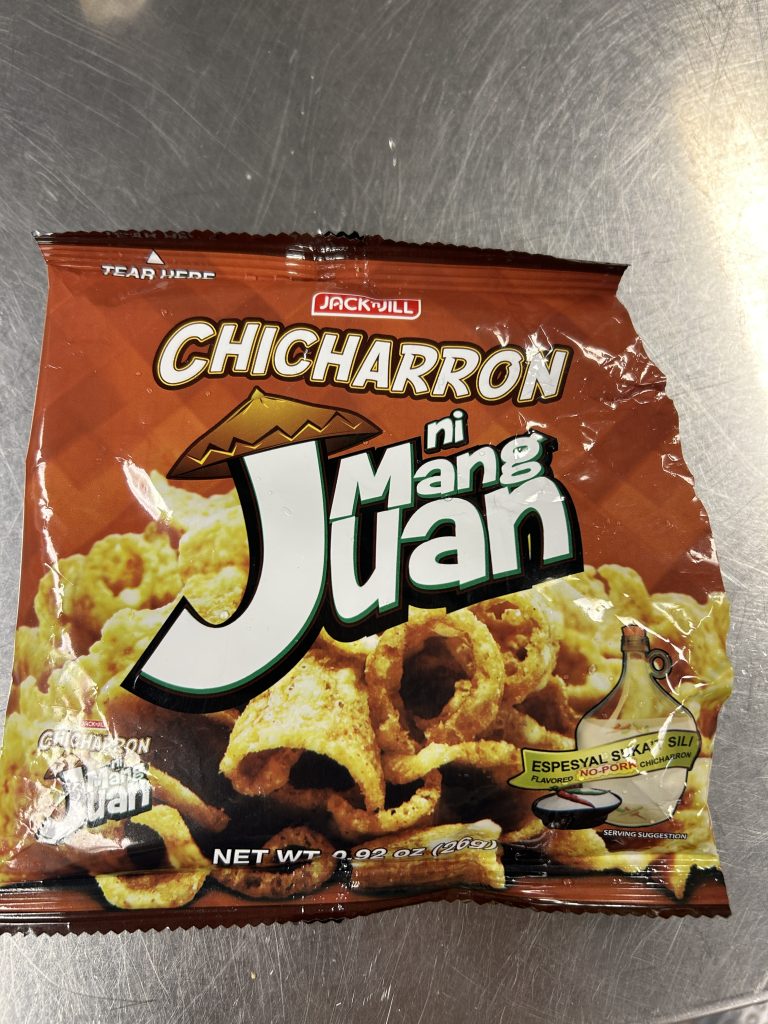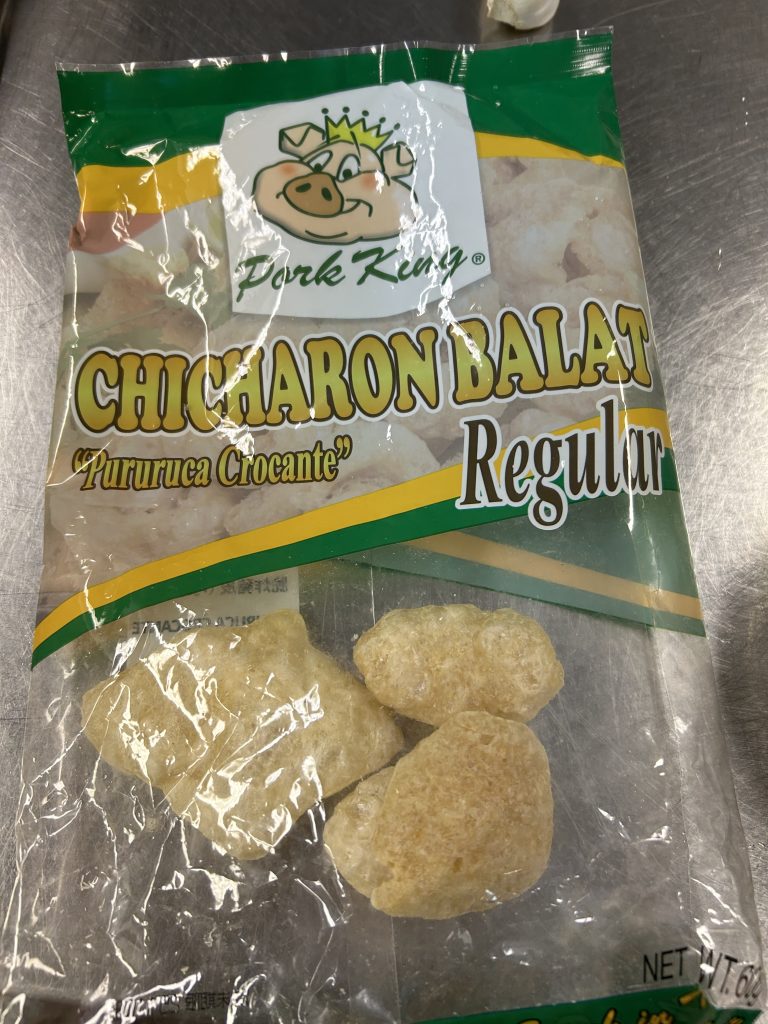 ・ チチャロンをポリ袋に入れて上からたたき、細かくします。