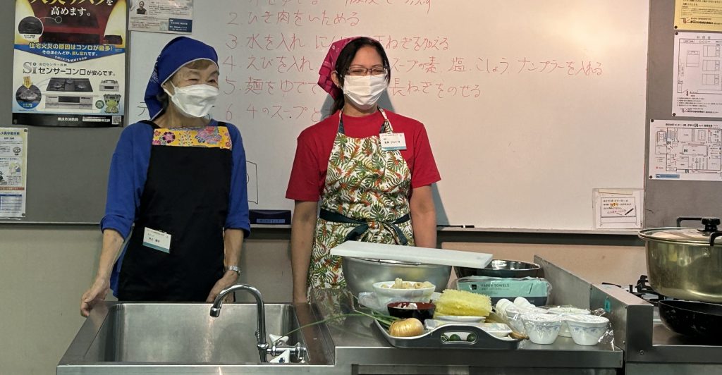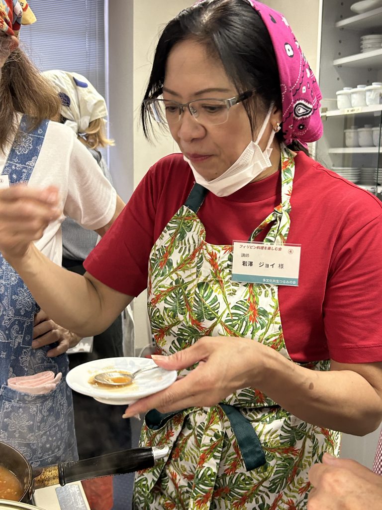 今日はエルサルドバルやフィリピンの参加者もいて、各グループ会話を楽しみながら調理しました。