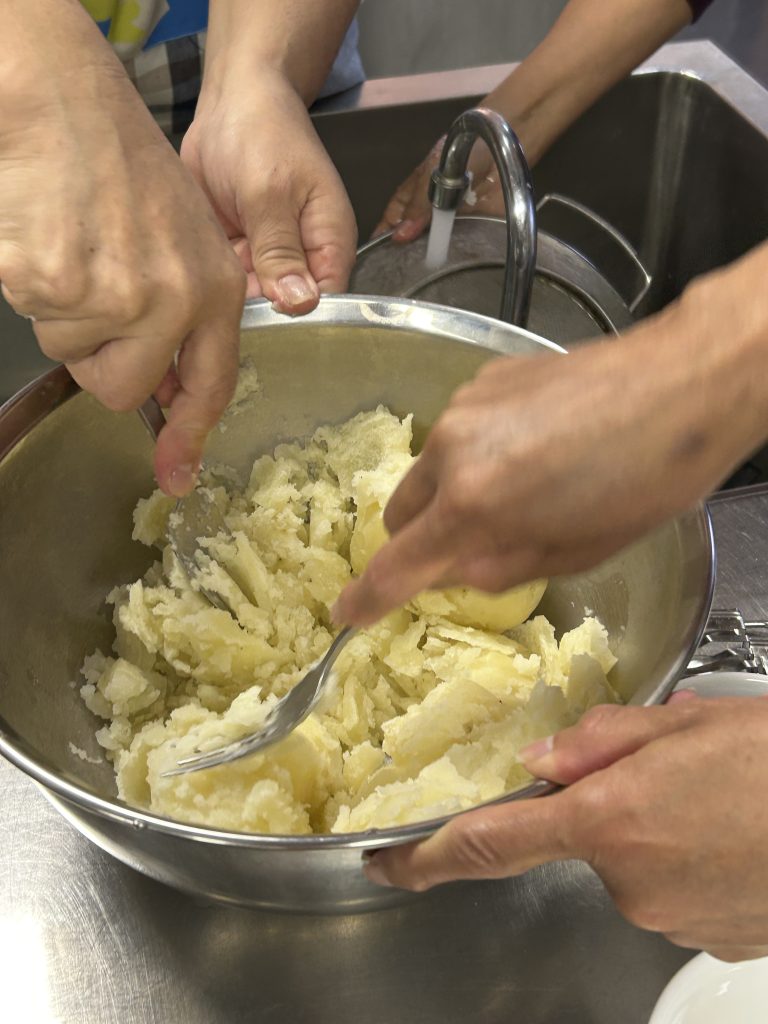 大きめのボウルのなかでマッシュにして、冷ましておきます。