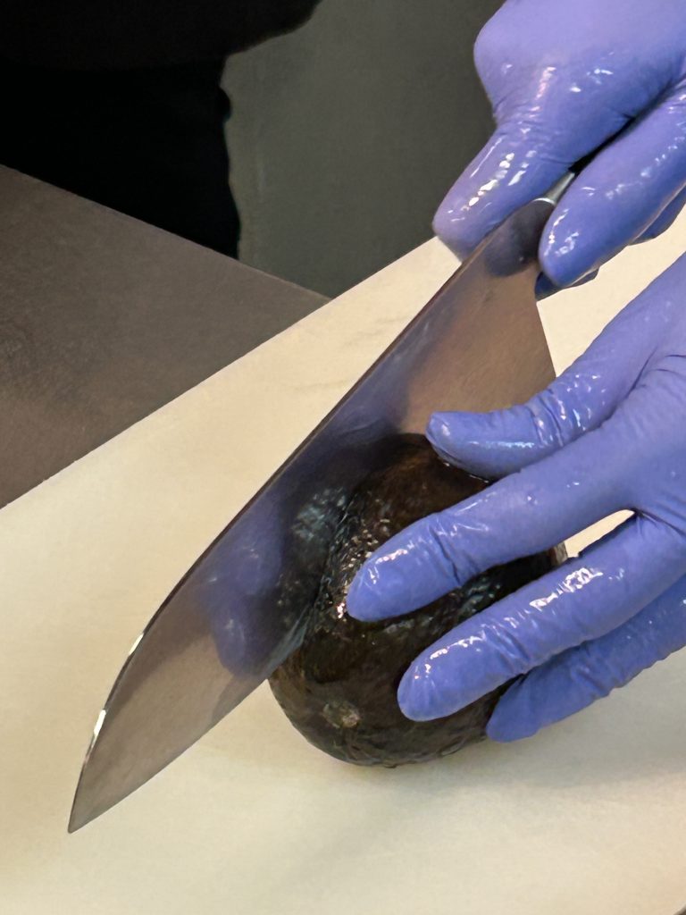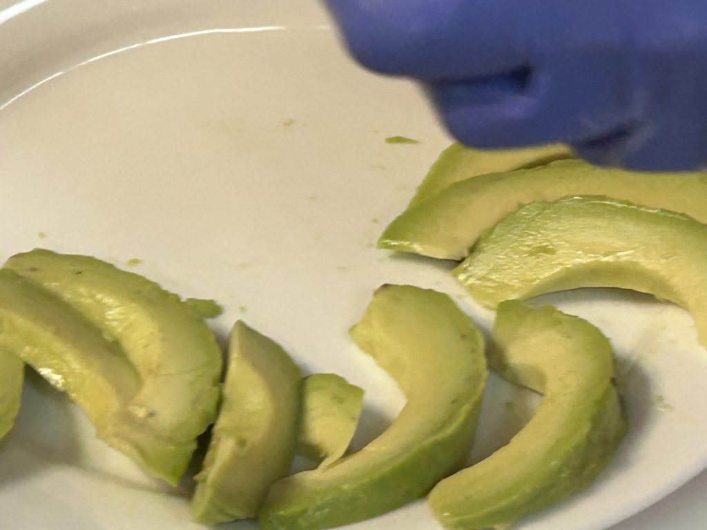 アボガドは皮をむき、1㎝の厚さにスライスしておきます。