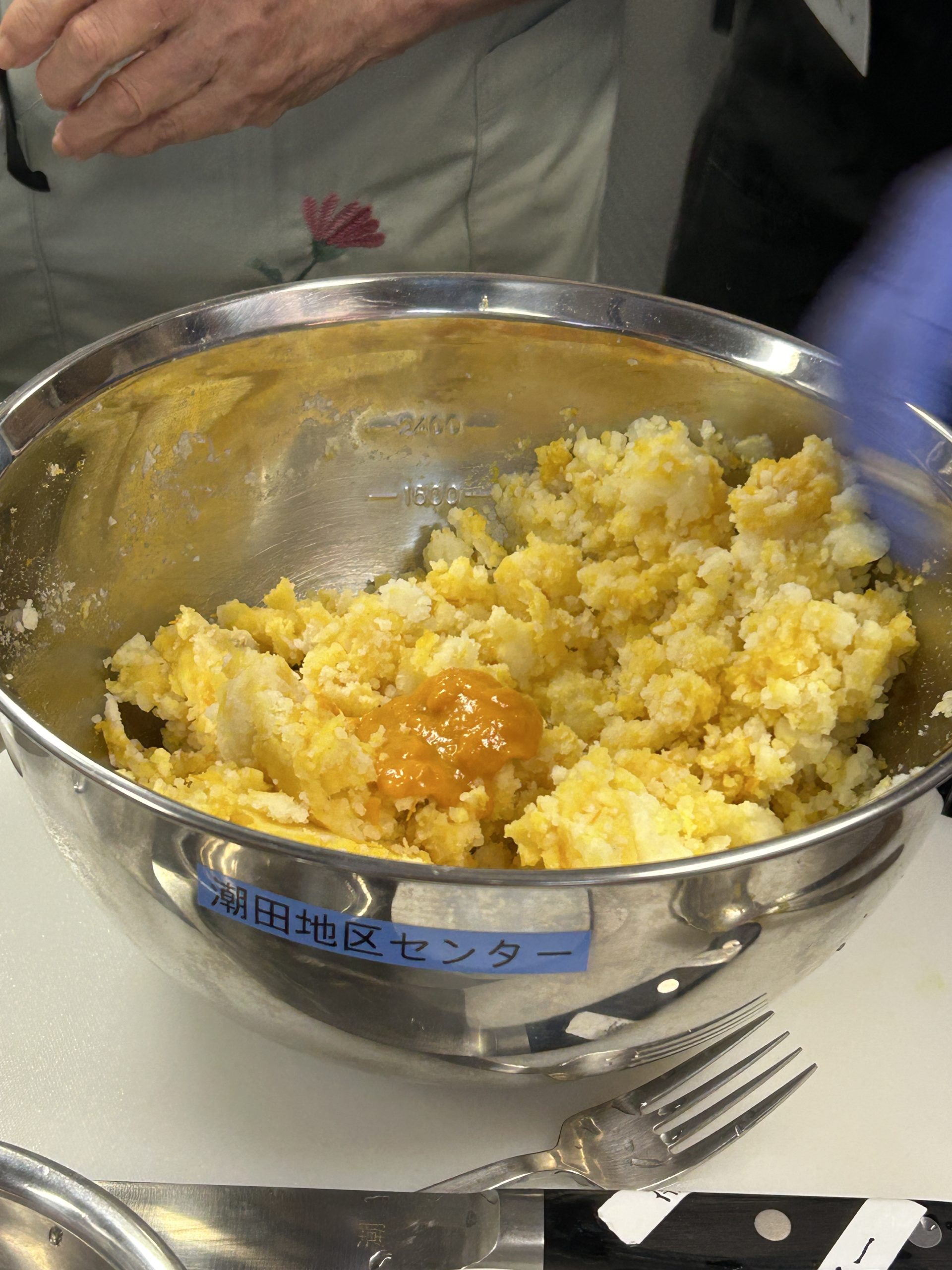 大きめのボウルのなかでマッシュにして、冷ましておきます。