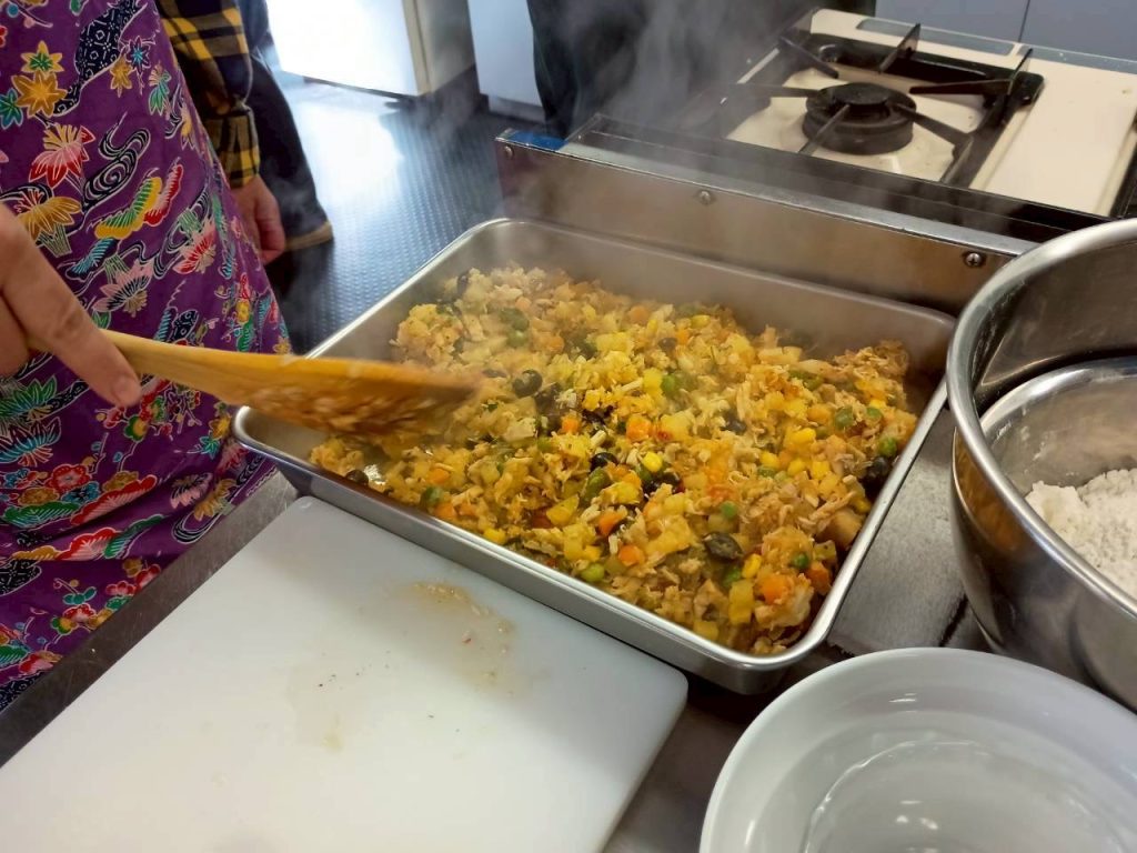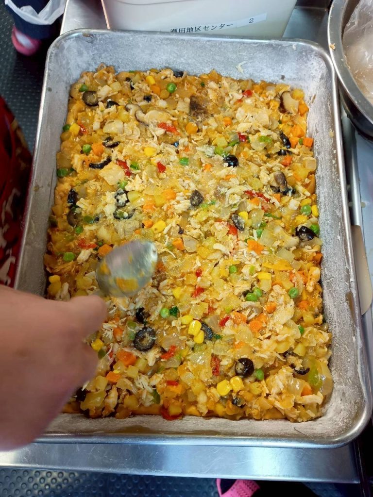 今日はブラジルのポピュラーな料理トルタ・サウガーダを教えていただきました。