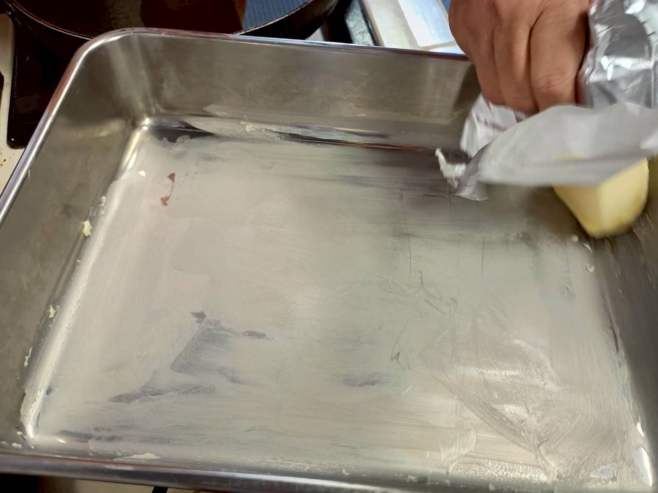 ・耐熱皿にバターを塗り、小麦粉をはたいておく。